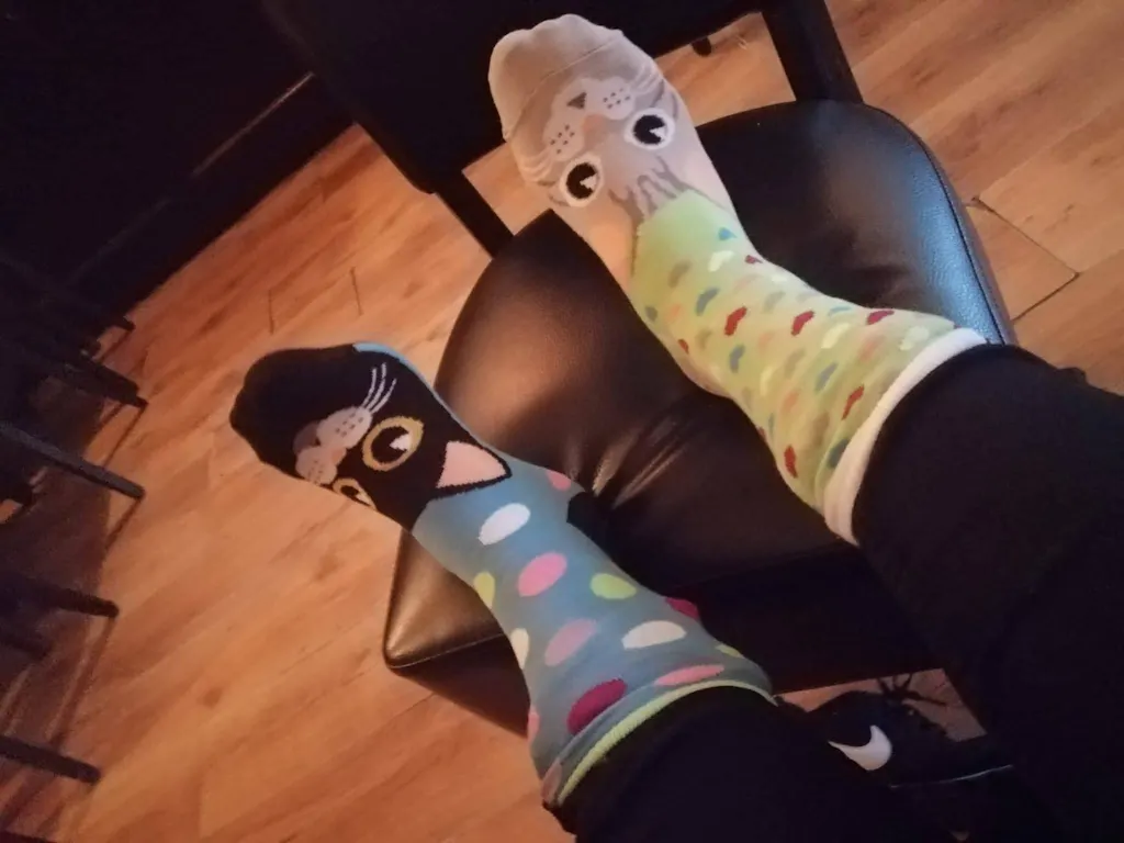 R. (Netherlands) Ik ben erg blij met mijn nieuwe kattensokken. Goede kwaliteit en komen ook goed uit de was. Ik heb zelf maat 39 en ze passen perfect