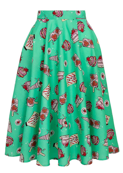 Hell Bunny Sweetie Pie 50's Swing Skirt Green