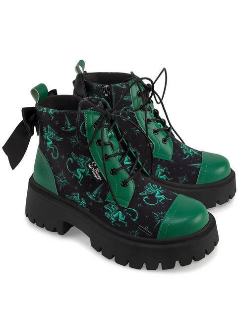 These Emerald Witch boots instantly add an enchanting flair to your outfit: playful, eye-catching, and perfect for those who love to infuse a bit of Wicked energy into their look.