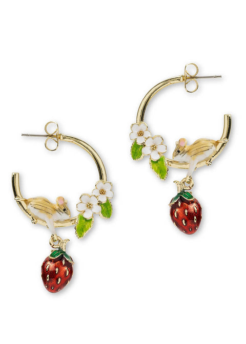 Bill Skinner Hoop-øreringe med jordbær og mus