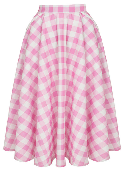 Tænk Brigitte Bardot på en solskinsdag ved Côte d’Azur — afslappet og chikt med det uimodståelige je ne sais quoi. Det rosa-hvide vichy i bomuld giver hende en drømmende picnicstemning, mens det flagrende skørt tilfører øjeblikkelig nuttethed. Kombinér med en legesyg bluse eller top… så er du klar til komplimenter (og spontane milkshakes).