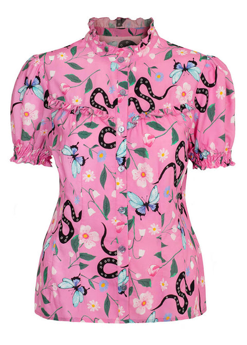 Hell Bunny Ma Boheme Snake 60'er Bluse Rosa