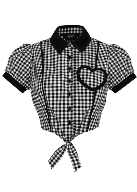 Hell Bunny Mel Gingham 60'er-bluse i sort og hvid